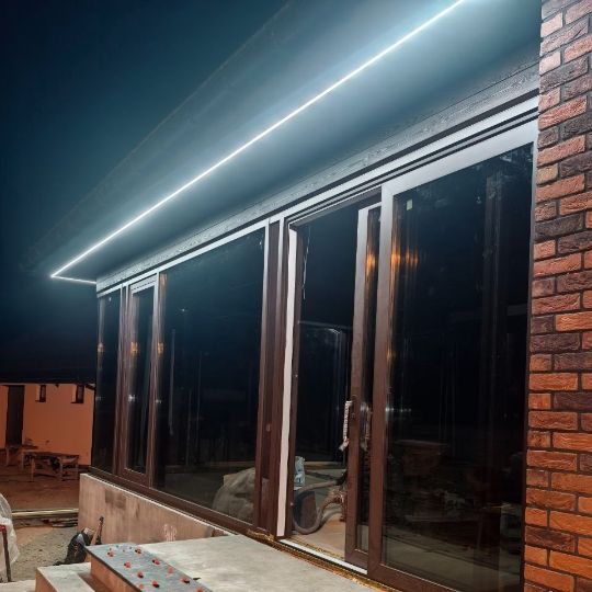 Подсветка подчеркивает уникальные элементы фасада, выделяет текстуру и формы здания, создавая впечатляющий визуальный эффект.